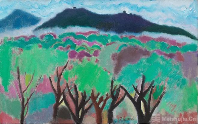王克举是位坚持到自然风景里去不断研究艺术史与艺术创作的画家。他的所有画作几乎都是在山峦旷野、乡村田园收笔的,但这并不影响他对自然的艺术创造。他总是在自然里寻找心灵的镜子。因而,他在每一次面对山川、田野与森林时,都寻找着某种陌生的感动,也总是在这种陌生之中进行了色相、调子与结构的破坏与重组,以期呈现他对于自然的想象、对于心灵的摹写。他偏爱画雄浑峻伟的山峦、整齐碧绿的阡陌、紫白相间的棉花和粗壮结实的玉米,乡土情怀成为他重塑自然存于内心最深处的隐秘。因而,他画面的色块更厚重、笔触更方整、基调更淳朴。