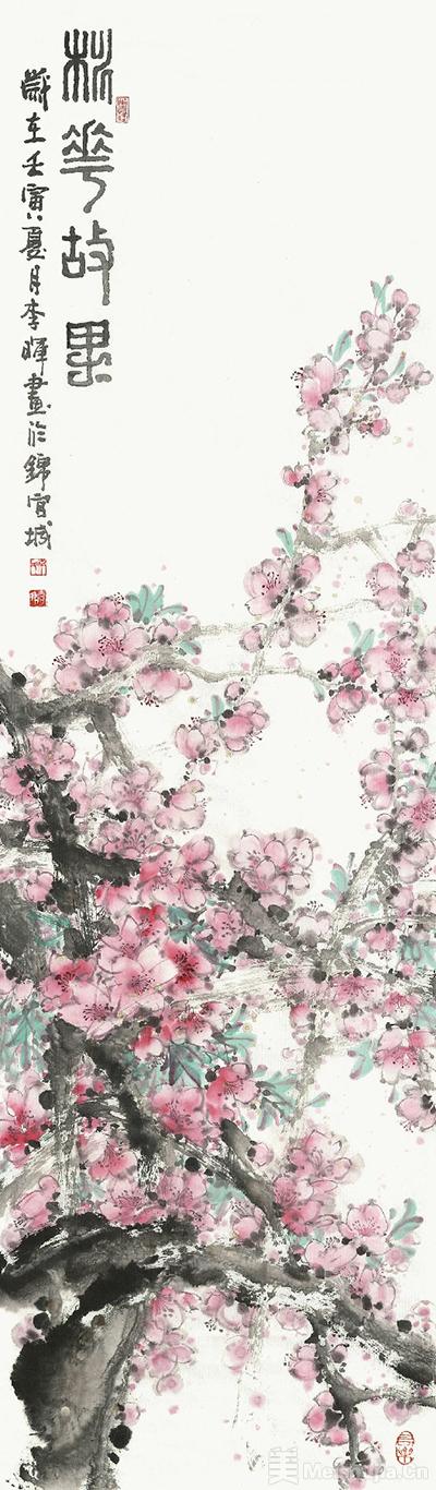 山水的浑厚之外,李晖的墨池中还有着一圈圈温润的涟漪。他的仕女图不假雕琢,现代人物亦无矫饰,皆以真诚之笔传递着对生活的观察。花鸟世界则色墨交融,清新的自然气息裹挟着书卷气扑面而来。他本就能讲最温柔的故事,只是总将它们藏在西部巨山深谷的大气象之后,一旦摘取出来,便成了这一幅幅满纸生花的柔美小品。
