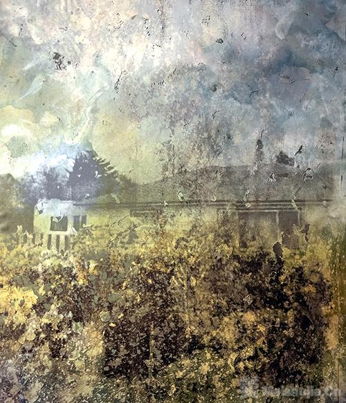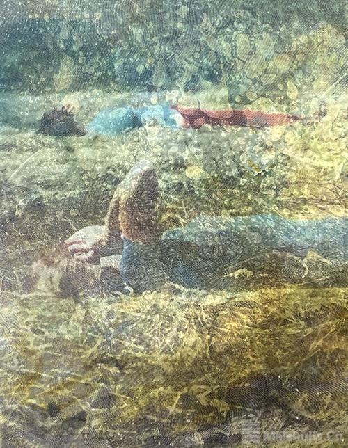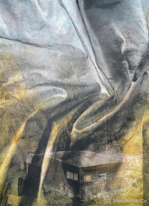 该项目以乡村与工业化世界为视角,艺术家走访了法国阿尔勒周边地区并延伸至卡马尔格地区。这片由利翁湾与罗纳河分支形成的广阔三角地带被称为“它们”,被当作实验场域。这片独特、魅惑又充满张力的空间,引发人们对盐沼(沼泽的一种)生态特性的关注。面对干旱、水位上涨等自然界中的力量与现象,尼尔森通过叠加丝网印刷图像和绘画,在作品中构建出生活区的流动与迁移,呈现这些地域的碎片化图景。通过混合印刷技术使物质呈现半透明质感,又或是通过多次实地考察中层层叠加的图像,更赋予作品丰富的层次感。