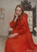(2/5)红裙妮娜 100x70cm布面油画2020年