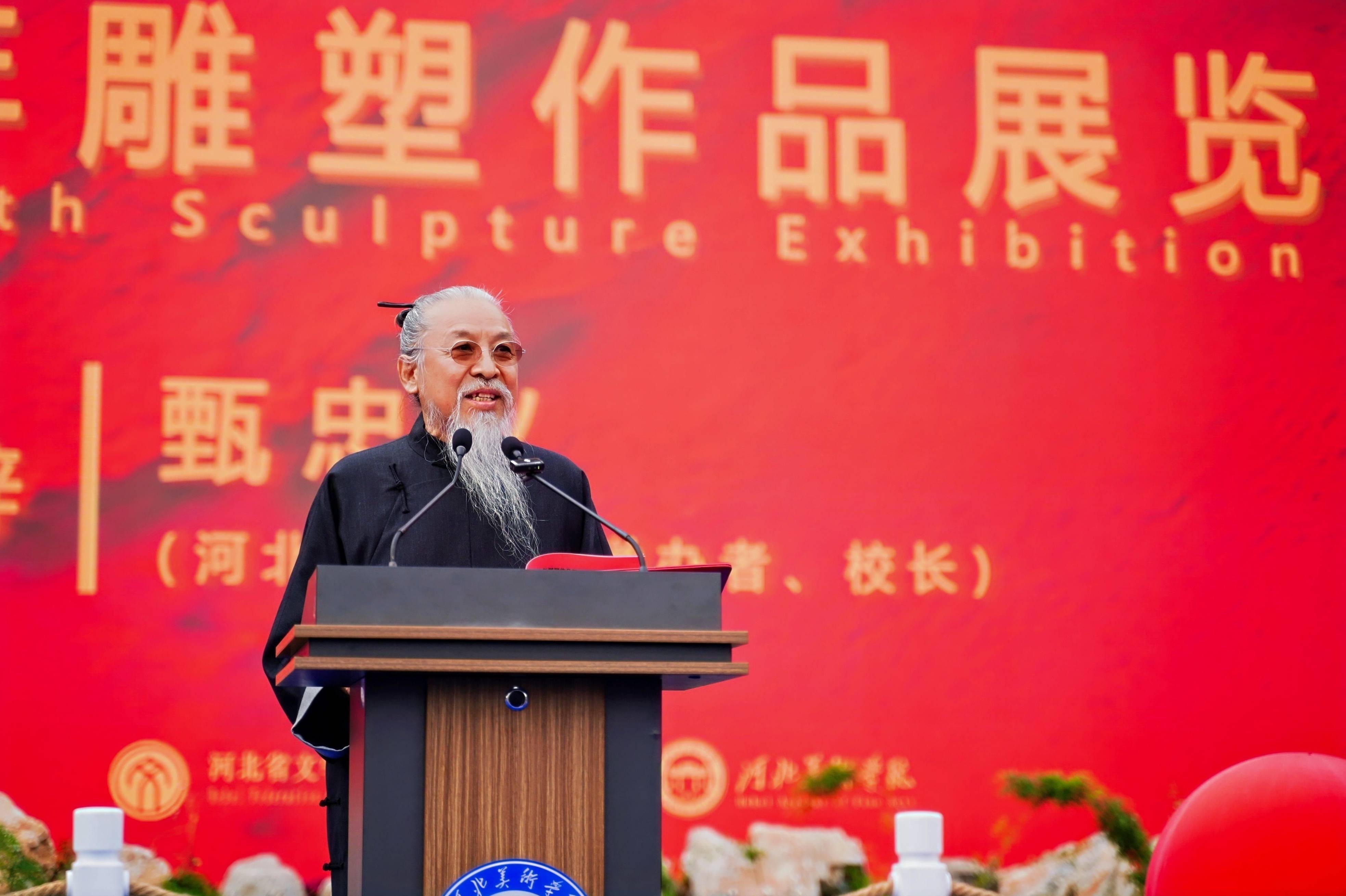甄忠义在开幕式致辞中指出,本次展览作为全国青年雕塑创作的重要平台,集中展示了青年艺术家在雕塑语言与观念表达上的创新探索。河北美术学院始终秉持传承美育精神的使命,高度重视雕塑学科建设。此次展览既是对青年创作成果的集中呈现,更是推动雕塑艺术当代转型的重要契机。我们愿以此次展览为新的起点,进一步加强学术交流与产学研融合,助力青年艺术家在传统与现代、本土与国际的对话中,开拓艺术的新境界、新可能,为青年艺术人才搭建更广阔的成长平台。