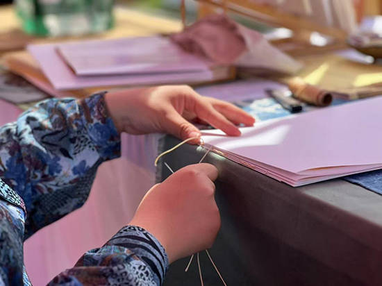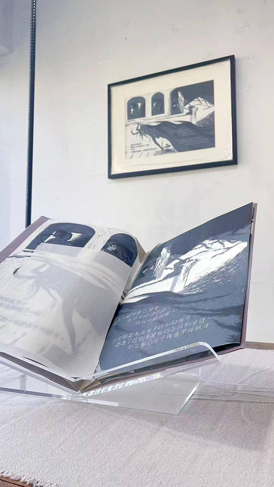 在数字阅读日益主导的今天,张骞戈以艺术家书为载体,重新定义了书籍的边界。展览中,每一件作品均由其亲手制作,从内页创作、印刷到装帧,甚至纸张制作和颜料自制,结合木版画、铜版画、麻胶版画、丝网版画及手绘插画等多重媒介,将书籍从传统的功能性阅读工具,升华为兼具触感、视觉与叙事体验的“三维艺术实体”。正如她在开幕式上介绍时所言:“手工书的制作是一场与材料、刻痕、纸张、颜料的深度对话,是身体、灵魂与媒介之间的相互书写,希望观众能通过这些书,感受到时间在手作中停留的痕迹。”