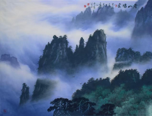 从傅抱石先生门下的悉心研学,到巴黎美术学院的油画探索,吕少华没有让不同艺术体系成为彼此的壁垒,反而在笔墨与油彩的交织中,开辟出一条独特的艺术路径。他笔下的山水,既有 “骨法用笔” 的千钧力道,长线凌空如铸钢,让传统山水画的线性之美尽显正宗气象;又融入了西方绘画对光影与质感的把控,使青绿山水在层层罩染间,既保留 “可游可居” 的东方意境,又焕发出更具视觉张力的现代神采。那幅被人民大会堂收藏的《黄河壶口特写》,便是最好的见证 —— 墨色与油彩共舞,将母亲河的磅礴气势与民族精神凝于画布,既是对自然的敬畏,更是对家国的礼赞。