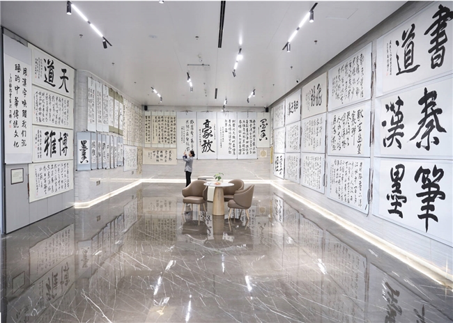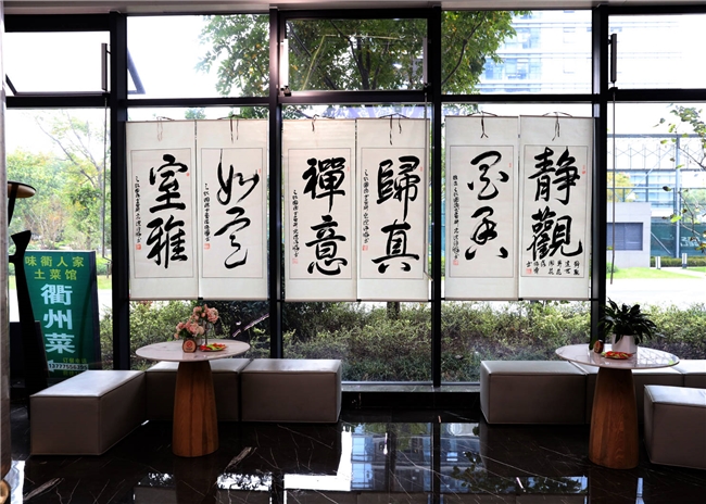 杭州其“江南意象”的精神寄托,也是其商业策划与艺术创作的交汇点。硒和云创写字楼作为创新企业聚集地,暗合其“传统艺术进入现代空间”的理念,让书法艺术走出传统展馆,融入当代人的工作与生活场景,实现了艺术的生活化与普及化。在这里,往来的科创从业者可以近距离感受传统笔墨的魅力,古老文字与现代科技碰撞出独特的文化火花,为快节奏的科创工作注入人文气息,也让传统文化在创新土壤中获得新的生命力。
