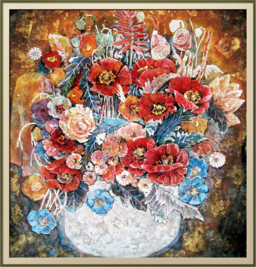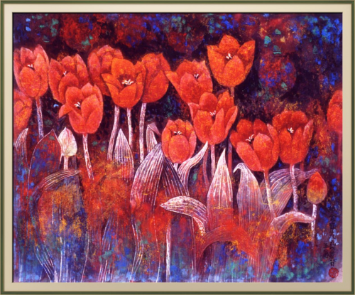 在众多画家群体中,当某一个画家的作品映入眼底时,让你怦然心动,无疑是一种缘分,可遇而不可求。很长时间以来,赵玉凤的作品仿佛是一个磁场,带着超强的磁性,深深吸引着笔者,她那遒劲俊美的线条,跌宕而富有质感;美轮美奂的色彩,饱满而温润典雅;气韵飘举的人物形态,微妙而生动传神;光色交汇的花卉姿貌,又带着很强的装饰性……,意蕴悠远,留恋入心。笔者是否真的领会了赵玉凤作品的内涵,不一定,但是,当笔者反反复复观摩她的作品时,则让笔者有着自己的内心解读。如果一个画家只在中国境内有市场,卖的好,却从未走出过国门,或者走出国门,在国外而无人问津,那么,按照美美与共的法则,这个画家就不算成功,即便他在国内卖的“很好”,也一定有“忽悠”的成分。赵玉凤则不然,二十几年前,赵玉凤的作品就不仅在国内有很多知己,在国外也有很多粉丝。赵玉凤的作品引起国外友人的关注,那是一次偶然,然而,任何“偶然”都一定经历由量到质的必然过程。有一次,赵玉凤参加朋友在澳大利亚大使馆的画展,当赵玉凤自信地把自己的作品拿给大使馆人员观看时,即刻吸引了众多目光,很多国外友人上前围观,议论纷纷,赞叹不已,由此,她迎来了一拨又一拨策展人的预约,先后多次在澳大利亚举办个人展览,也多次应邀在美国、新加坡等国家参加展览,好评如潮,掌声雷动,不绝于耳,“也卖了很多画”。其中,在澳大利亚的展览中,一位外国友人这样评价她的作品:“我们想象中的绘画都是荣宝斋的那样,您的作品和荣宝斋不一样,我很喜欢”,这无疑就是对赵玉凤最好的嘉奖,是的,艺术不需要陈陈相因地模仿,更不需要拜倒在前人脚下、不能直立地重复着古人的样式,艺术需要创作,需要独创性,艺术更需要由心的抒发。赵玉凤做到了毫无疑问,赵玉凤对自己的作品是自信的她的自信源于她那几十年深厚的绘画积淀、源于高度驾驭新时代艺术表现技法的能力、源于放眼世界的艺术视野,以及独到的艺术思辨。对艺术,赵玉凤血脉中似乎天生流畅着艺术的基因,上世纪五、六十年代,在那个艰苦的岁月里,小孩能填饱肚子就是最奢侈的愿望,赵玉凤的青少年时期就是在那个年代渡过的,然而,赵玉凤与那些为了填饱肚子的小孩相比,有着自己的快乐,一片剪纸、一张年画都能让她心驰神往,如果能在绘画中,放飞一下梦想,无疑就是她最幸福的时光。正是对绘画有一种发自内心的喜欢,在同龄人中,赵玉凤显得有些不一样,她也凭借着两张小画就考取了山西美术学校(现在的西北工业大学)。由于基础好、有想法,又似若带着独有的绘画才情,很快,赵玉凤让老师觉得“应该重点培养”,在老师指引下,她找到了放飞自我的天地,如饥似渴地沉浸在自己的精神世界中,对传统笔墨,对光影、素描、色彩、造型等新时代艺术表现语言,她进行认真而系统地学习。乡里乡间、田间地头,画速写、画素描、搞创作,她很刻苦,也进步很快。后来,赵玉凤生活在北京,参加蒋彩平等著名画家的多种培训班,访名师、交名家,赵玉凤拓展了艺术视野,也打开了自己的艺术市场,成为一位名副其实的著名画家。纵观赵玉凤的作品,可以发现,她的线条丰富而有弹性,洒脱而富有质感,这得益于她曾经对山西永乐宫壁画有过废寝忘食的临摹。八十、九十年代,文化部组织艺术家对山西永乐宫壁画进行复制,年轻的赵玉凤就是其中一员,当她面对山西永乐宫壁画时,壁画上,线条的穿插、疏密、飘举,一次次拨动着她的心弦,让她兴奋不已,累了,一条被单,席地而睡,饿了,一块干粮,就是一顿午餐,虽艰苦,但是,她乐在其中。大半年下来,当她看到一张张精微逼真的临摹,喜悦之情溢于言表。虽然,时过境迁,但是,现在看赵玉凤笔下的《临永乐宫壁画》,依然栩栩逼真、皆尽其妙,从中依稀看到她当年的那份认真、那份坚韧。正是临摹山西永乐宫壁画时,赵玉凤下过苦功,才练就了她落笔即成、运行肯定的线条,也正是对山西永乐宫壁画有着深入骨子里的理解,她笔下的线条才能游刃有余、有的放矢。如今,笔在手中,线在心中,心绪在哪里?笔尖的风华就停驻在哪里,赵玉凤完全可以做到“指哪打哪”,这是功夫,这样的功力凝聚着赵玉凤的汗水和智慧,也承载着他对艺术那一颗纯粹而执着的心。纵观赵玉凤的作品,也可以发现,她对色彩有着超出常人的驾驭能力,她对色彩的运用,似若带着哲学家的敏感,好像洋溢着诗人的气质。显然,这离不开她对敦煌壁画深入肌理的研究。赵玉凤临摹敦煌壁画如同临摹山西永乐宫壁画一样努力、勤奋、细致、刻苦,唯不同的是,当她面对着一幅幅沧桑恒古的敦煌壁画时,她带着思辨的意识、带着为我所用的舍取精神、带着触类旁通的技法融合,有临摹的实践性、有研究的合理性。观其笔下的《飞天》、《水星之梦》等系列作品,可以看到敦煌壁画斑驳陆离的年代感,也可以看到敦煌壁画色彩的晕染叠加,笔与笔、色与色,似若无意,却彰显着独特的色彩融合、彰显着独特的技法表现,体现出符号这个时代大众的审美标准。这些作品,赵玉凤在尊重敦煌壁画原貌的基础上,添加更加丰富的色彩,同时,又把金粉、银粉点缀在多种色彩交融之处,或自由挥洒、或块面构成,渲染一种缥缈而浑厚的视觉空间。交相辉映的色温变化、色差对比,气脉流动的虚实关系、空间转换,不再把观者的目光仅仅聚焦于一处具体的形