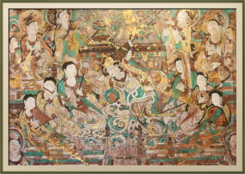 而她的艺术视野从未局限于古卷。从1989年墨西哥驻华大使馆个人画展的26幅精品被国际友人收藏,到2002年澳大利亚巡回展上校长与艺术家竞相收藏;从《长城之梦》等作品入选“当代中国美术经典作品”被国家博物馆收藏,到《敦煌舞乐·诸事保福》以80万拍出后典藏福州保福寺,她让中国工笔重彩走向世界,更让传统艺术在当代焕发新生。近十余载,她潜心创作之余投身公益,更以《泊来金辉·红色郁金香》衍生服装配饰,让笔墨之美融入生活。