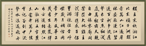 多年来他坚持自学不辍,工作之余游名山大川,古都重镇,所到之处,拜读碑林木刻,牌匾铺名,学名家笔法,集大家所长,融会贯通,形成用笔流畅,点画遒劲,字形优美,结构严谨的风格。观其作,可见欧书的底色,颜柳的质感,赵文敏的风神,二王行书的节奏,可谓中和恬适取法丰富。其长于行楷,笔酣墨饱,骨健韵和,舒朗秀逸,静雅厚重,偶出飞白而少见枯笔。其榜书作品中锋行笔,含蓄蕴藉,线质朴拙,浓淡有度,圆润典雅,内涵丰富,书卷气十足。很多作品中别具一的“跋”诠释了其读书体会、人生感悟,承载了其个人文化学养、审美观念和生命体验,他的题跋不仅仅是寄兴,亦是治学,更是其对文化的理解和传承,且赋予了对原作的新的生命,读来使人感觉华质相伴,亲和舒畅,赏心悦目。
