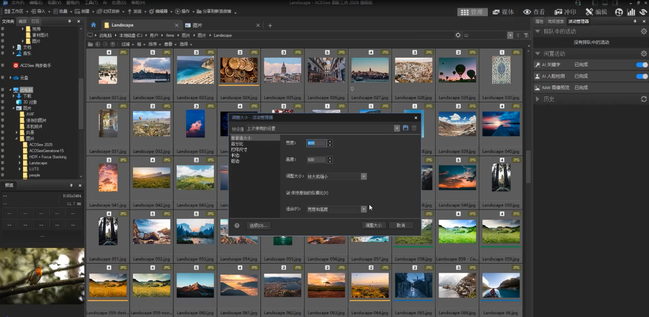 活动管理器与选项卡改进:ACDSee 2026 旗舰版的活动管理器得到了扩展,ACDSee 选项卡也有所改进,使得用户在管理和浏览照片时更加高效和便捷。