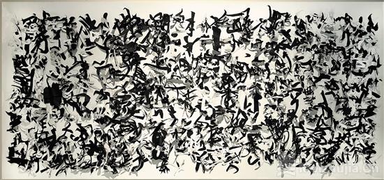 邱涛 问·兰亭集序 110×240cm 水墨、纸上行为 2024年