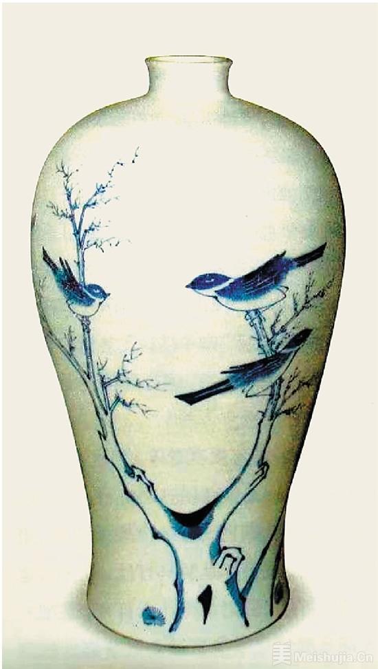 以绘画影响瓷器之“粉本”为例。马未都曾在《瓷之纹》中有写:“清初四王山水雄霸画坛,朝野效仿一时”,“康熙青花山水无处不见四王山水的影子,远山近岸,层次分明,所用青花施展墨分五色之技,的确独步本朝矣”。瓷界泰斗耿宝昌在《明清瓷器鉴定》中写道:“康熙时期由当时宫廷画师刘泮源等人的设计为蓝本,再由分工严格、技巧熟练的工匠依样绘出,其效果与当时著名画家在纸卷上作画所产生的效果相近。同时宗法晚明的陈老莲、沈周等画家的山水、人物绘画,也有较多的表现。”