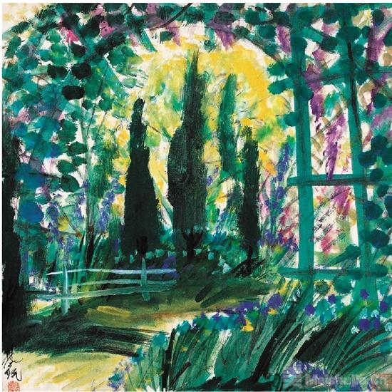 上海从近代以来就是中西融合的最佳试验场,画家们的公园主题创作正是其中一个精微的缩影。上海画家在传统笔墨中大胆融入多重技法创新,将“师造化”传统引入都市公园。画家们带着速写本走进人民公园、中山公园、龙华苗圃、林荫绿地……用笔墨记录市民休憩场景,使作品兼具自然生机与生活气息。在多元化的艺术探索中,上海画家的公园主题创作既保留了传统笔墨,又注入了时代符号。