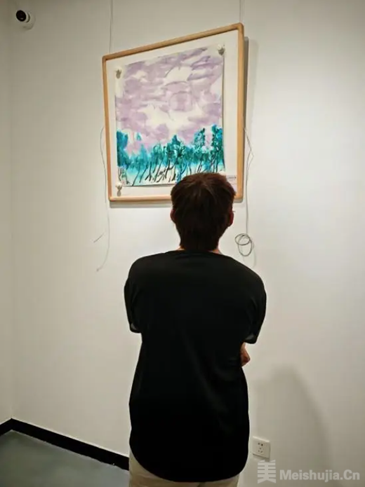 王清州参展的彩墨作品《紫云翠影》以其诗意的抽象语言和独特的色彩表达,受到组委会及观众的高度认可。作品以淡雅的紫色和翠绿色为主调,营造出静谧而神秘的意境——紫云轻盈流动,绿山沉稳生机,形成虚实相生、层次丰富的视觉结构。笔触流畅而富有力度,既传承东方水墨的传统精神,又融入当代审美与创新意识,体现出艺术家对自然与生命的深刻感悟。