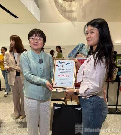 10月1日,上海浦东美术馆迎来了2025年第100万名幸运观众,这也是浦东美术馆首次一年观众破百万人次。这名幸运观众是来自深圳的王佩玮,浦东美术馆馆长李旻坤为她送上了纪念证书。