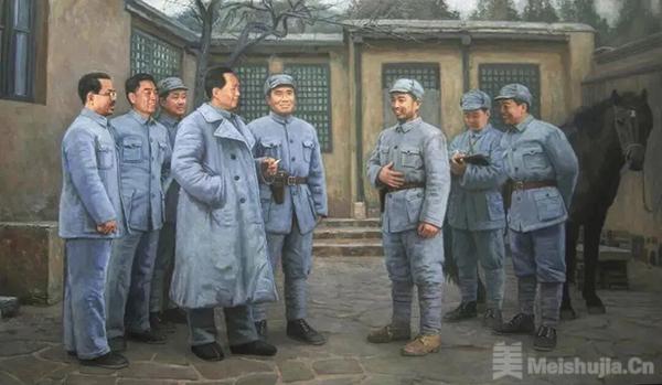 窦鸿老师的油画,构图宏大开阔,宛如一幅幅壮丽的史诗画卷在眼前徐徐展开,让人仿佛置身于一个波澜壮阔的历史场景之中;色彩沉稳厚重,如同岁月沉淀的琥珀,散发着迷人的光泽,蕴含着无尽的韵味与故事。这种风格体现出一种史诗般的“壮美”,让人在欣赏作品的同时,仿佛能听到历史的回声,感受到时代的脉搏在有力跳动。而他陕北汉子般的豪放性格,又如同炽热的火焰,为他的作品注入了生命的激情与温度,使画面充满了蓬勃的活力。在他的画作中,人物形象鲜活饱满,情感真挚浓烈,让观者不禁为之动容,与作品产生强烈的情感共鸣。