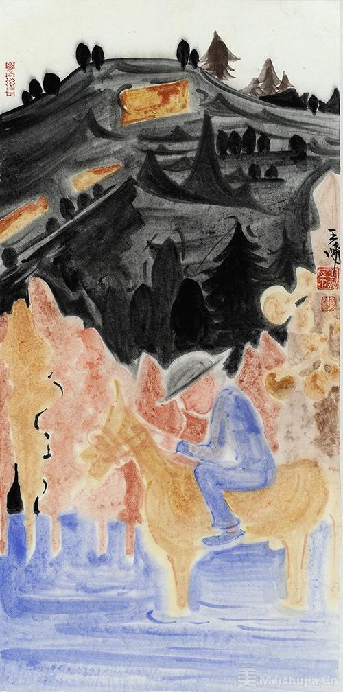 其次,王鹏的绘画是从传统工笔画法向外延展的一种审美。其技法与色彩力求在表达时代的过程中,完善绘画传统技术的文化外延。或者说,王鹏努力在追求“古为今用”的艺术原则中,昭示着艺术新语言构成是有技术方法可循的——写意性工笔就是一种方法论中的思想体系,很大程度上能适应时代发展,充分发挥中国画精神。