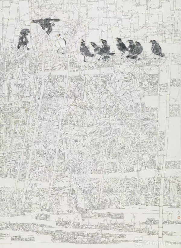 李远精-丝缕竹间·梦栖鸟鸣-234*163cm