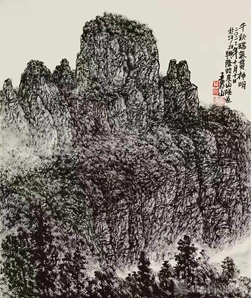 总而言之,王界山的艺术品牌,是焦墨笔墨淬炼出的风骨,是山水意象承载的情怀,是哲学思想浸润的灵魂。从技术层面的“干裂秋风、润含春雨”,到精神层面的“天人合一、澄怀味象”,再到传播层面的“学术与传播并重”,他构建起一个层次丰富、内涵深厚、影响广泛的艺术品牌体系,不仅彰显了个人的艺术成就,更以实践证明了传统艺术在当代的强大生命力。