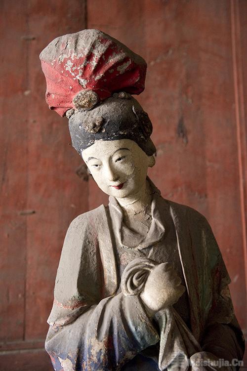 观众参观完序厅展览,对晋祠有了基础了解后,便正式开启了这场跨越三千年的文明对话。沿东西向中轴线,依次经过水镜台、献殿、鱼沼飞梁,驻足圣母殿时能看到“晋祠三绝”之一的宋代彩塑,也能看到火遍网络的“比耶龙”。宋代彩塑侍女像个个眉目传神、栩栩如生,是宋代皇室生活的缩影。殿前柱上的木雕盘龙鳞片层层,龙须根根,一派生气。