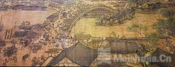 风俗画是描绘节令风俗及人们日常生活的绘画。我国风俗画历史悠久,魏晋时就出现了以风俗命名的绘画作品,唐、五代风俗画渐渐普及。及至两宋时期,社会经济发展,市井生活丰富多彩,风俗画的创作也非常踊跃。朱锐、苏汉臣、李嵩等,创作了大量的风俗画艺术作品。这些作品充满艺术活力与时代气息,遂使两宋成为我国古代风俗画创作的鼎盛时期。其中,尤以《清明上河图》最为著名。明清以来,《清明上河图》成为固定的绘画题材和表现程式,后代画家的临摹本、仿造本种类繁多。基于学术上的相关性,这次展览中,也展出了张择端《清明上河图》的一些明清仿本。