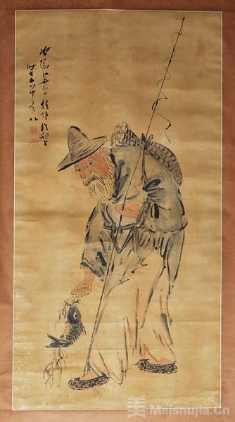 如图所示这幅作品,是安徽蚌埠市博物馆收藏的清代画家吴昌桂创作的《渔翁》中堂。