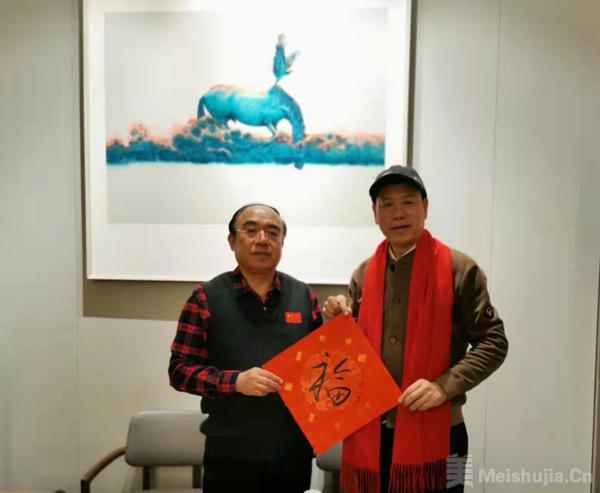 金思宇(左)与原中国美协理事、画家兼艺术理论家王仲先生(右)在一起参加活动