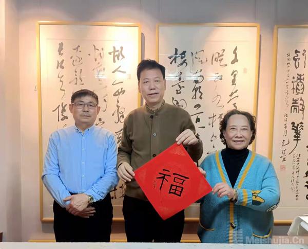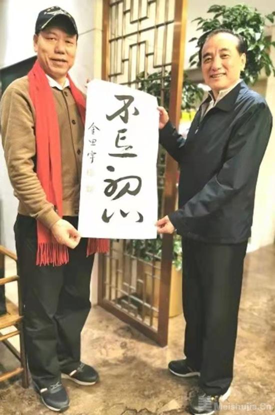 金思宇(中)书赠著名话剧、影视演员孙桂田(右)