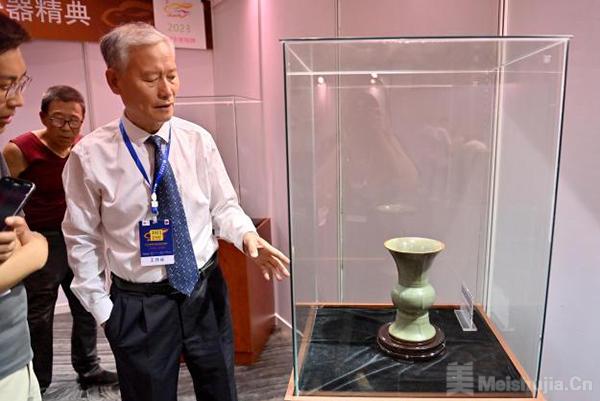 刘民朝介绍南宋官窑出戟尊。张瑶 摄