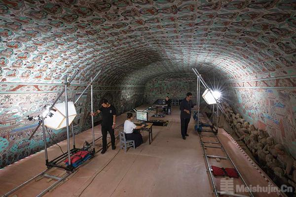 敦煌研究院文物数字化保护团队在洞窟内采集数据