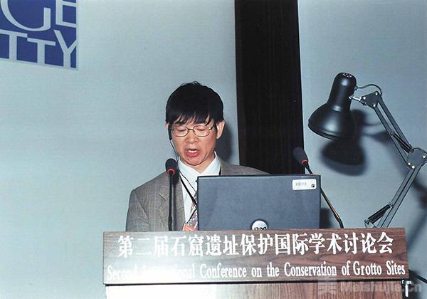 王进玉在第二届石窟遗址保护国际学术讨论会上发言 受访者供图