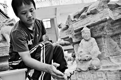 记者见到他时,他刚刚从40里外的北辛平宜村回来,脸和胳膊都被晒成暗红色。他目前还是北京大学考古文博学院的在读学生,谈起这次修复工程,他说能和团队里这些大师们学到东西才是最关键的。