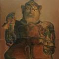 天梯山金刚像 160×120cm 2023年 自述 我的绘画创作以个体内视角为核心切入点,聚焦原始拙朴的物象形态建构,在简约表达中蕴含深邃的神秘质感,致力于叩击被世俗认知所遮蔽的人性深层情绪维度。我始终秉持“艺术即心灵本真呈现”的创作理念,将对内在精神世界的探索作为作品情感张力的核心来源,使创作成为连接个体与人性本质的媒介。 艺术表达上,我坚守粗犷厚重的风格